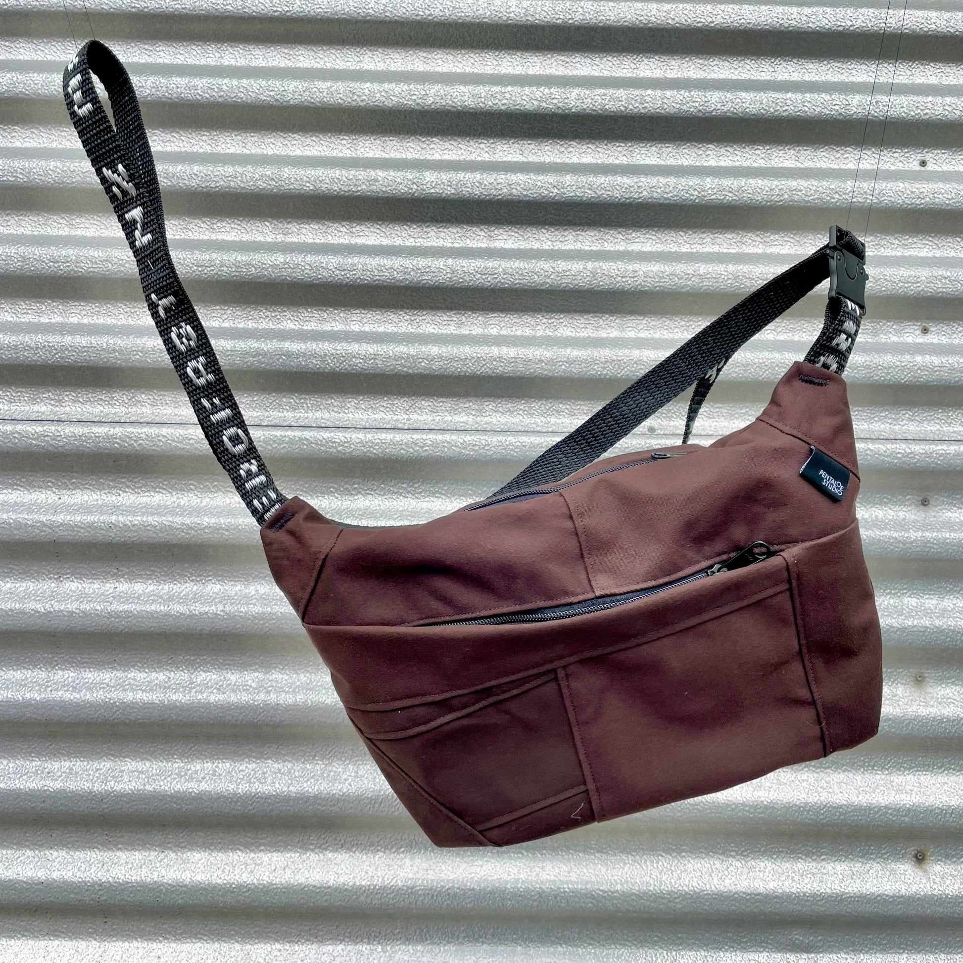 Inspired by the size and shape of the classic cycling musette. This version has a zip main pocket, making it a perfect travel companion or festival buddy.